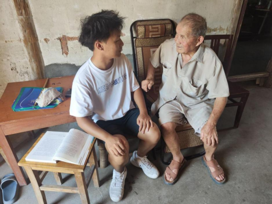 陆叶丹同学寻访的是南通市海门区培新村91岁高龄的抗美援朝老兵黄仁义,老人当年参加了异常激烈的铁原阻击战。回忆起当年的战斗场面,老人眼神凝重,神情激动。“当时前线条件十分艰苦,一天只吃两个压缩饼干,但战友们劲头很足。由于当时我们的装备比较差,美军的战机又轰轰地飞,我们白天不能行动,只好在晚上行动。战场不仅是物资的较量,更是军人意志的拼搏,我们中国人民志愿军凭借着钢铁般的战斗意志和英勇的大无畏精神取得了抗美援朝战争的胜利”,老人如是说。