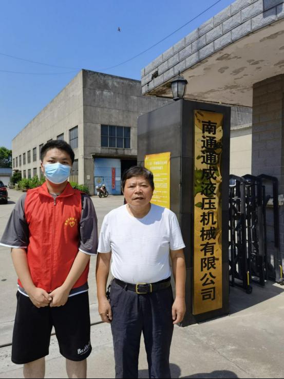 创业先锋队的成员王烜宁同学在南通市崇川区碳素新村进行实地走访调研,寻访了当地较有名气的企业家严长明。“在改革开放初,我从一个农民开始随后独立创业,经过多年的摸爬滚打,进行第三次创业,成立了南通通成液压机械有限公司。专研技术,经商重信誉,我会秉承这份初心继续经营。”严长明说道。
