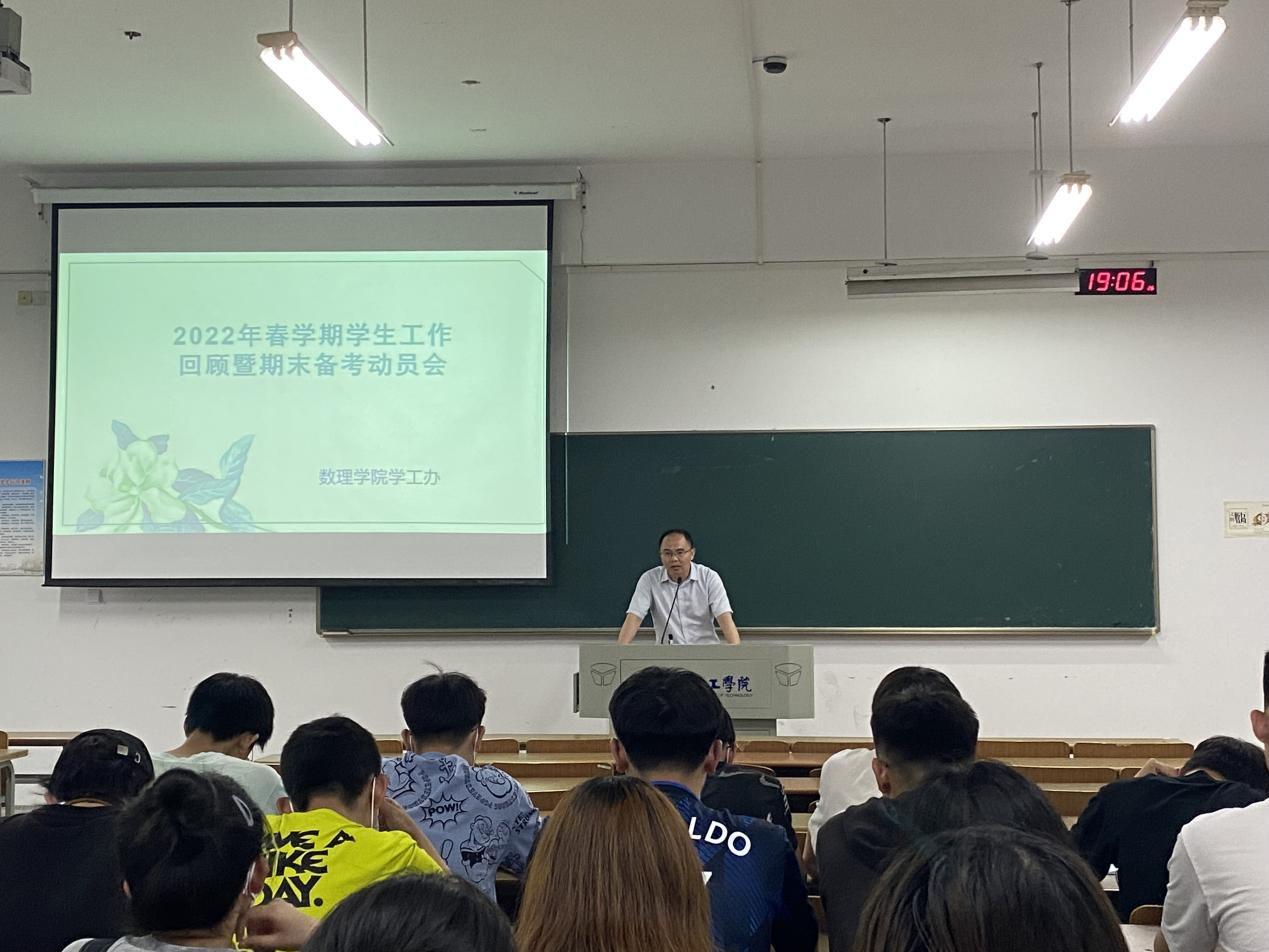 辅导员孙杰老师以“不忘初心,砥砺前行”为主题,对2022年春学期同学们参加的各项活动以及取得的成绩进行了逐一点评,对同学们在学风建设、团学工作、第二课堂活动开展、疫情防控管理等方面展现的好学深思、朝气蓬勃、严守纪律的状态表示赞扬和肯定。时值期末考试周,孙杰老师还强调了考风考纪,要求同学们诚信参加考试,用自身努力和实力交出满意的青春答卷。