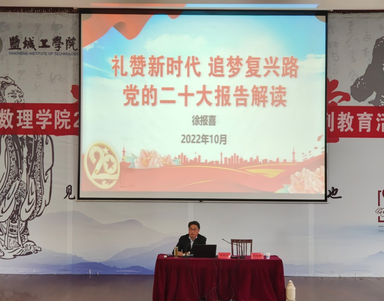 1019日下午,在南校区五四报告厅,数理公司党总支邀请集团原社科部主任、校关工委副主任徐报喜教授专题报告解读党的二十大报告。公司党总支书记魏伟华主持,新生辅导员和全体2022级新生参加。