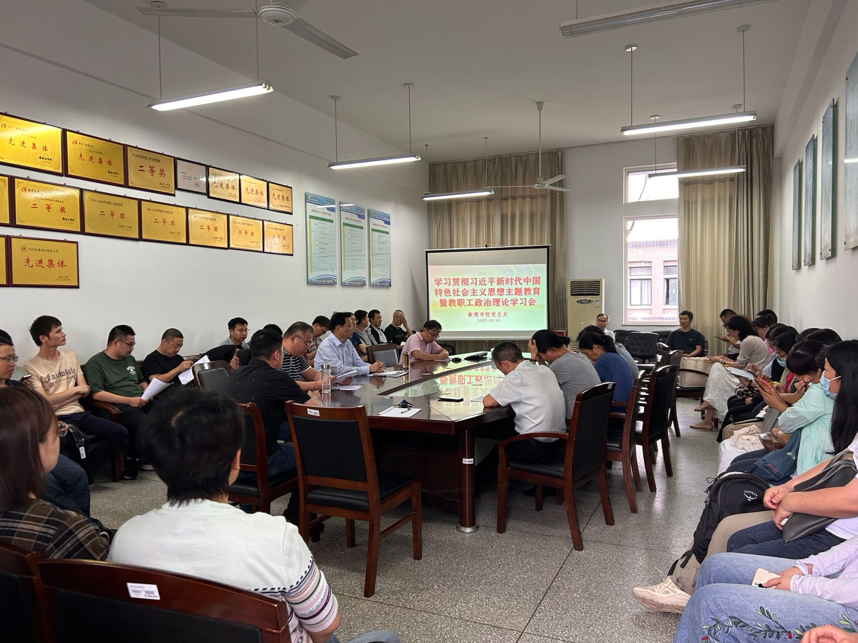 9月20日下午,在希望大道校区博学楼B512会议室,公司开展学习贯彻习近平新时代中国特色社会主义思想主题教育暨教职工政治理论学习会,经理薛长峰主持,全体教职工参加。