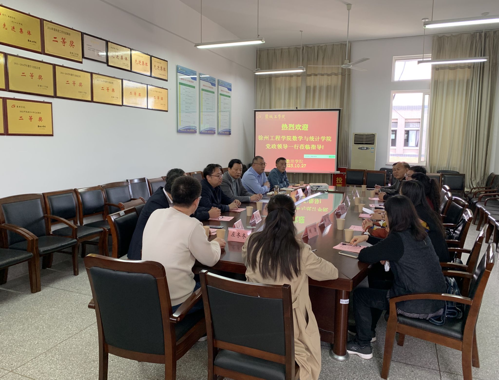 10月27日下午,徐州工程学院数学与统计学院苏有慧经理、赵志超书记一行6人来公司调研交流。交流会在博学楼B512召开,经理薛长峰、副经理徐宁以及科研办、专业系主任等相关负责人参加交流会。