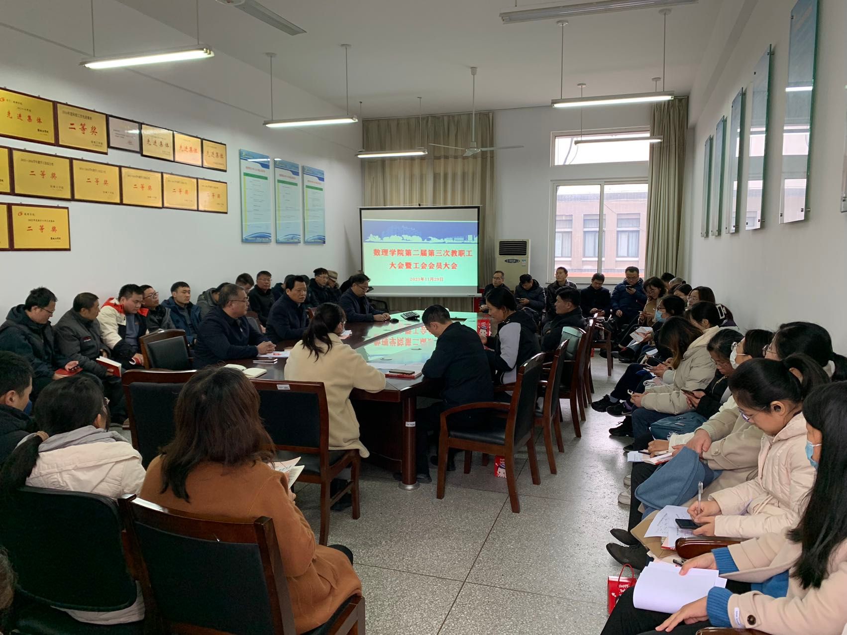 11月29日下午,在博学楼B512会议室,公司召开第二届第三次教职工大会暨工会会员大会,英国上市公司官网365全体教职工参加,学院经理薛长峰主持。