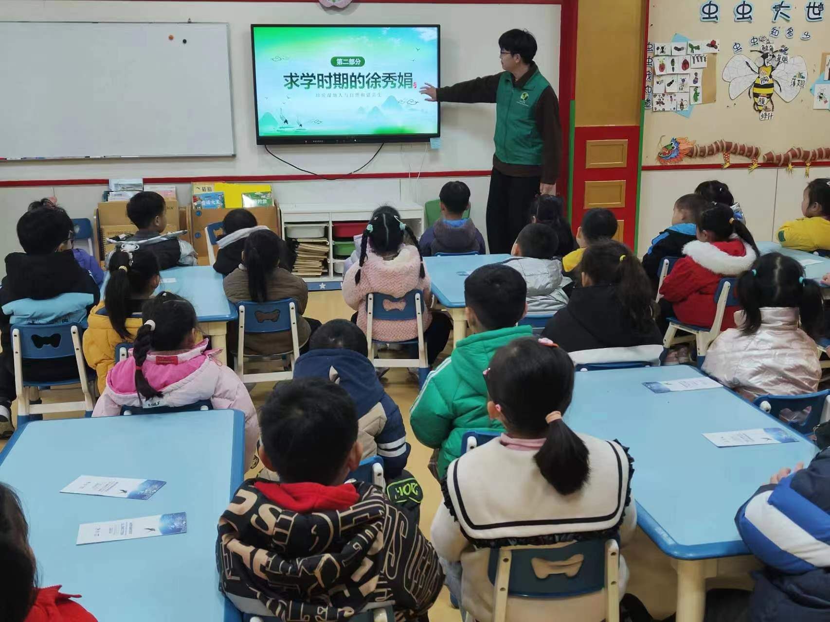 “大家听说过盐城的湿地自然遗产吗?”“你认为湿地具有哪些生态功能?”……在中二班教室内,志愿者们通过湿地知识问答,一下子就调动起了小朋友们的积极性,小朋友们纷纷抢答,现场气氛十分热烈。紧接着,志愿者们通过精心准备的幻灯片,生动讲述了共和国第一位环保烈士徐秀娟为盐城湿地生态保护献出年轻生命的感人故事,在场的小朋友们无不被徐秀娟的先进事迹所动容。