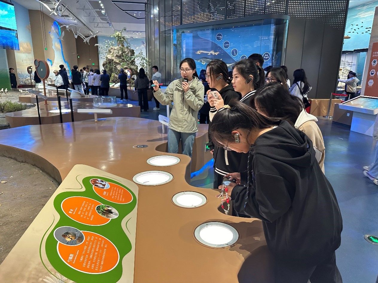 在黄海湿地博物馆,新生们通过观看短片回顾了盐城黄海湿地的申遗之路,依托博物馆场景模拟、沙盘模型、各类标本、多媒体互动等形式载体,近距离感受盐城黄海湿地绝美的自然人文风光。广大新生们也在参观过程中进一步理解了保护湿地、保护自然的重要意义。
