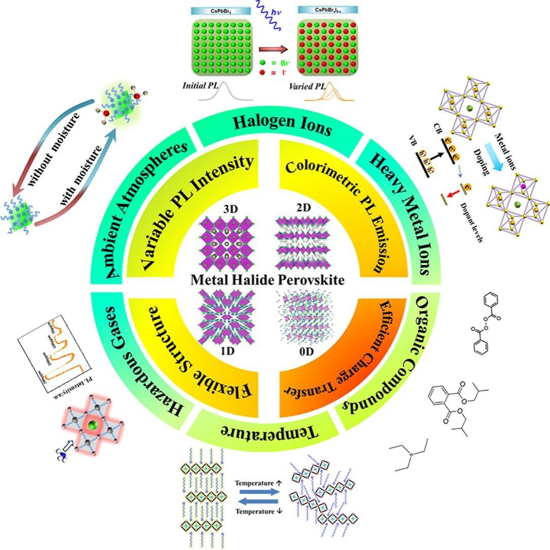 金属卤化物钙钛矿凭借其卓越的光物理特性,在太阳能电池、发光二极管、激光器和光催化剂等前沿科技领域的发展中占据了举足轻重的地位。然而,其应用潜力远未被完全挖掘。作为荧光传感器,金属卤化物钙钛矿在化学分析和温度监测方面同样展现出了巨大的潜力,为多功能应用开辟了崭新的道路。荧光传感技术作为环境监测和化学分析的重要手段,对卤化物钙钛矿材料的深入研究提出了更为迫切的需求。