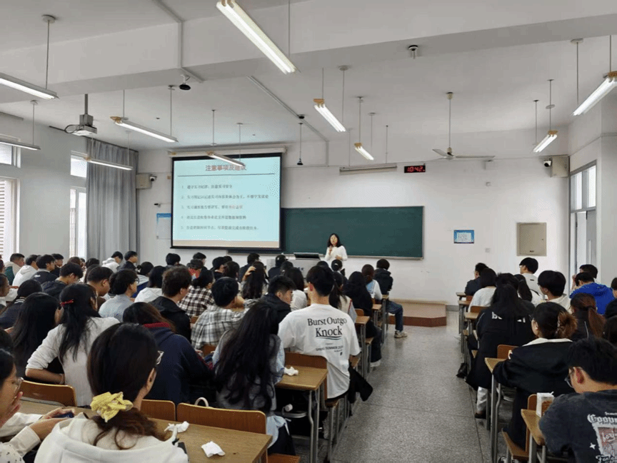 员工工作办公室主任孙杰从员工管理和安全教育的角度,对毕业实习期间的离校手续办理及安全注意事项进行了专题说明。她提醒同学们在实习期间要提高安全意识,遵守实习单位及学院的各项规定,注意人身与财产安全;同时,认真履行离校登记手续,保持与学院和指导教师的联系,确保实习与毕业工作顺利进行。